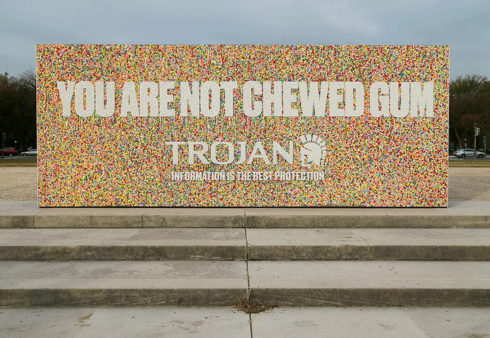In abstinence-only sex education, young people are often taught through shame, using metaphors like a chewed piece of gum to suggest they lose value after sex. Our strategy was to flip that metaphor on its head, reclaiming it as a symbol of empowerment and positioning Trojan as a voice for honest, sex-positive education. We brought that to life by building a massive gum wall on the National Mall, inviting people to chew, stick, and take a stand, turning a symbol of shame into a public act of protest.